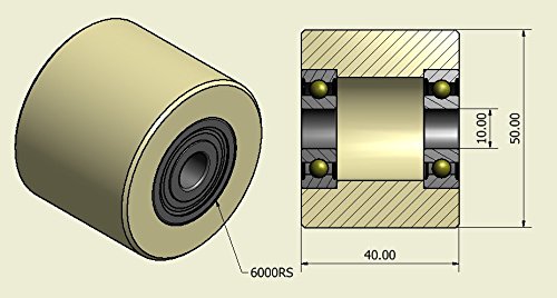 50-40-10 - Confezione da 4 ruote in nylon lavorato da 50 mm di diametro, realizzate nell'UE (cuscinetto da 40 mm di larghezza-10 mm).