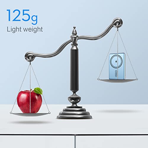 5000mAh Piccolo Power Bank Magnetico Wireless KOOSEED,Caricatore Portatile 3 Uscite/2 Ingressi,Caricabatterie Portatile Sottile Mag-Safe,Powerbank Leggero Design per iPhone 14/13/12 Pro/Max ecc
