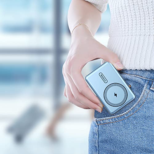 ⭐【Pacchetto Incluso】5000mAh caricabatterie portatile wireless blu, cavo da USB-C a USB-C e manuale del prodotto.