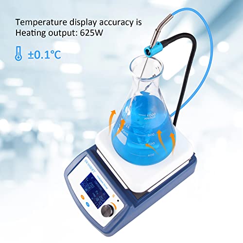 Schermo LCD preciso di tempo e temperatura: Diversamente dagli altri, l'ora e la temperatura vengono visualizzate chiaramente sullo schermo LCD, la velocità massima di 2000 giri/min e la temperatura massima della piastra in ceramica è di 400 ° c. il controllo della temperatura esterna è possibile collegando il sensore di temperatura con precisione a 0. 5°C, quantità di agitazione massima fino a 5L, dopo aver posizionato i campioni, è sufficiente impostare tempo e temperatura.