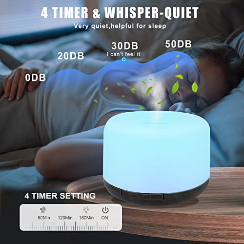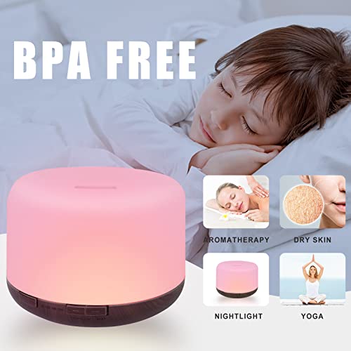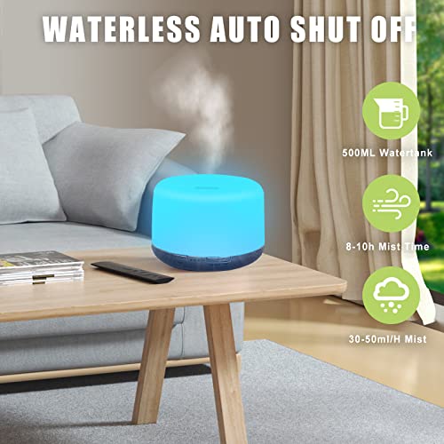 500ml Diffusore di Oli Essenziali, Senza BPA Umidificatore ad Ultrasuoni con Telecomando e 7 Diverse Luci -Spegnimento Automatico Senza Acqua