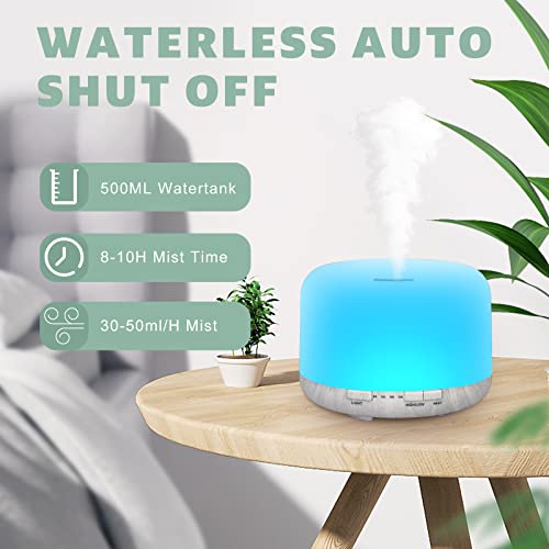 500ml Diffusore di Oli Essenziali, Umidificatore ad Ultrasuoni Senza BPA con Telecomando, in Polipropilene (PP), LED, Grigio