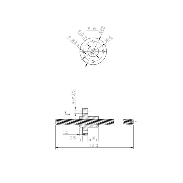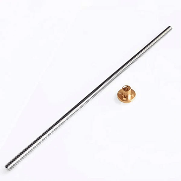 500mm T8 Lead Screw and Brass Nut (Acme Thread, 2mm Pitch, 4 Starts, 8mm Lead) for 3D Printer Z Axis