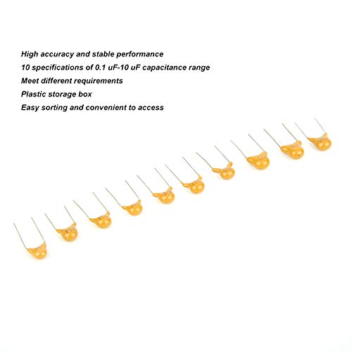 ◎ 10 Specifications: The ceramic capacitor kit has 10 specifications in total, and the capacity range is 0.1 uF-10 uF, which can meet different requirements and also can meet your needs largely
