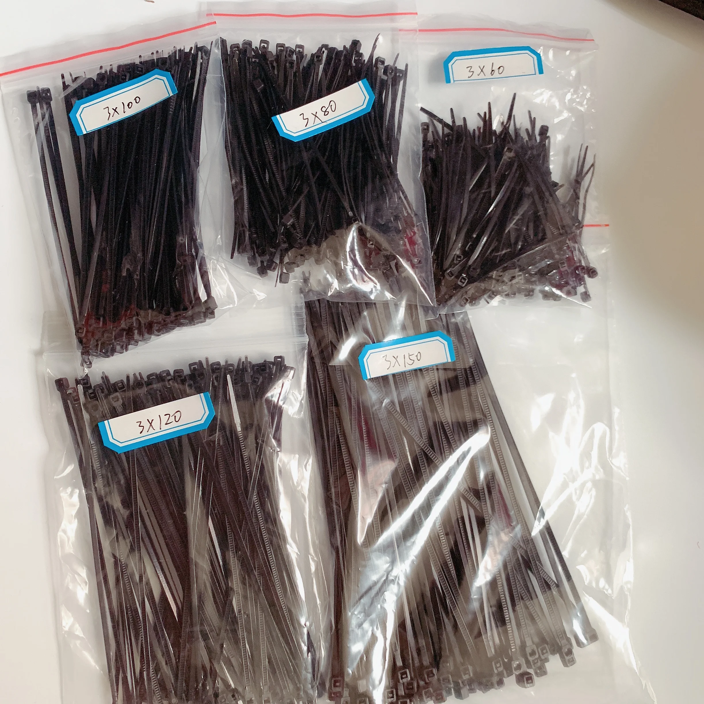 500pcs Black/ white 3x60 3x80 3x100 3x120 3x150mm Assorted Self-locking Nylon Cable Ties Plastic Zip Tie Loop Wire Wrap Zip Ties
