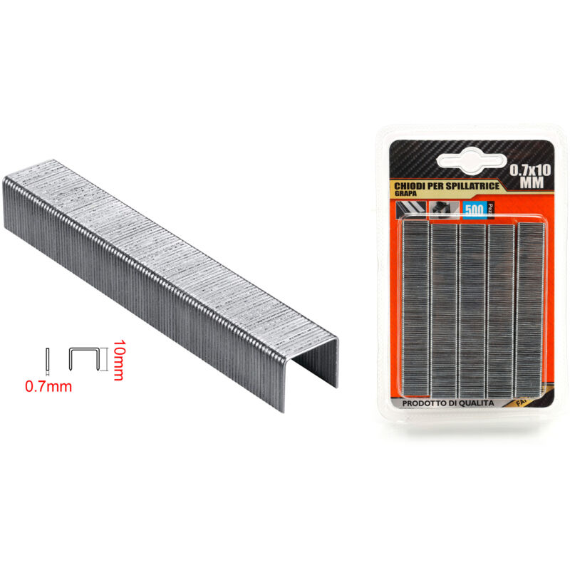 Punti Universali tipo D per Graffatrice 0,7x10mm, Graffe per Sparapunti a D Adatto su tessuti, stoffe, tappeti, cartone, listelli in legno piatti, pannelli di fibre dure e reti metalliche Le graffe a filo sottile sono ideali per numerose applicazioni sia professionali che nel Fai-da-Te Dimensioni: Spessore x Altezza: 0,7mm x 10mm Contenuto: 500pcs Graffe/Punti tipo D Punti Universali tipo D per Graffatrice 0,7x10mm, Graffe per Sparapunti a D Adatto su tessuti, stoffe, tappeti, cartone, listelli in legno piatti, pannelli di fibre dure e reti metalliche Le graffe a filo sottile sono ideali per numerose applicazioni sia professionali che nel Fai-da-Te Dimensioni: Spessore x Altezza: 0,7mm x 10mm Contenuto: 500pcs Graffe/Punti tipo D
