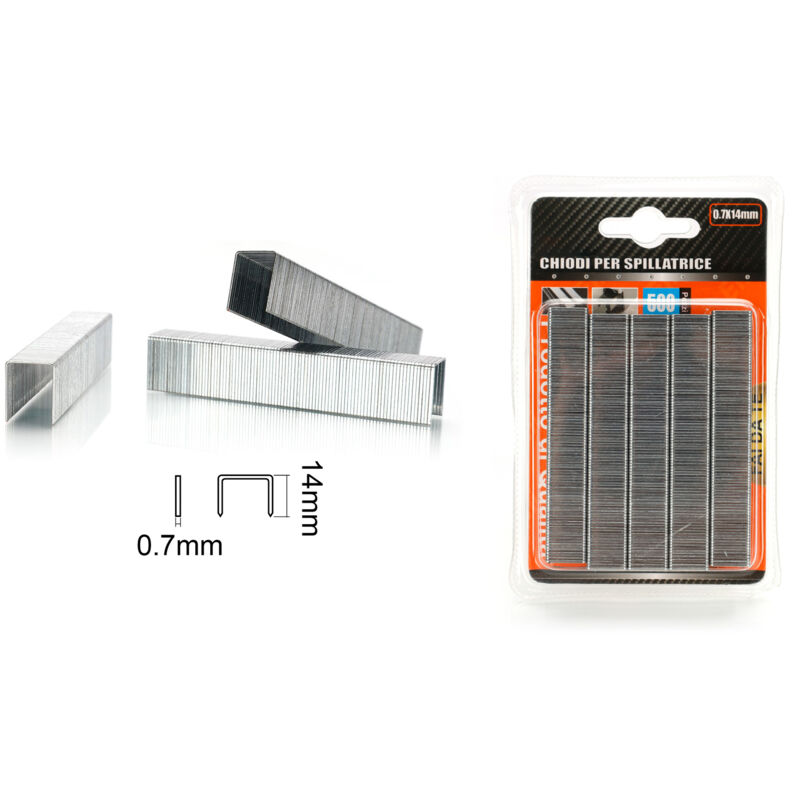 Punti Universali tipo D per Graffatrice 0,7x14mm, Graffe per Sparapunti a D Adatto su tessuti, stoffe, tappeti, cartone, listelli in legno piatti, pannelli di fibre dure e reti metalliche Le graffe a filo sottile sono ideali per numerose applicazioni sia professionali che nel Fai-da-Te Dimensioni: Spessore x Altezza: 0,7mm x 14mm Contenuto: 300pcs Graffe/Punti tipo D Punti Universali tipo D per Graffatrice 0,7x12mm, Graffe per Sparapunti a D Adatto su tessuti, stoffe, tappeti, cartone, listelli in legno piatti, pannelli di fibre dure e reti metalliche Le graffe a filo sottile sono ideali per numerose applicazioni sia professionali che nel Fai-da-Te Dimensioni: Spessore x Altezza: 0,7mm x 12mm Contenuto: 500pcs Graffe/Punti tipo D