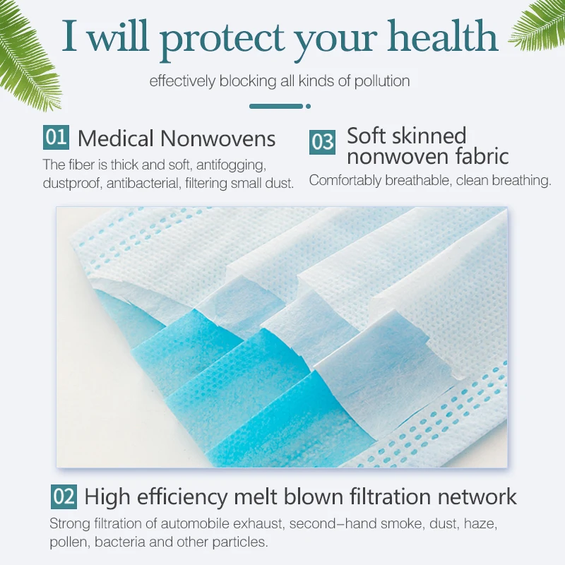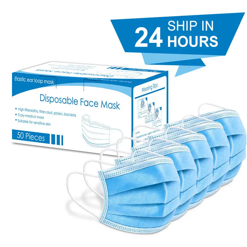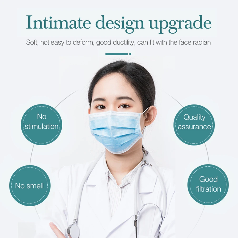 Fast Ship 50/100Pcs Disposable Medical Masks Non Woven 3 Layers Anti Dust Pollution Smog Breathable Face Mouth Adult Blue Masks