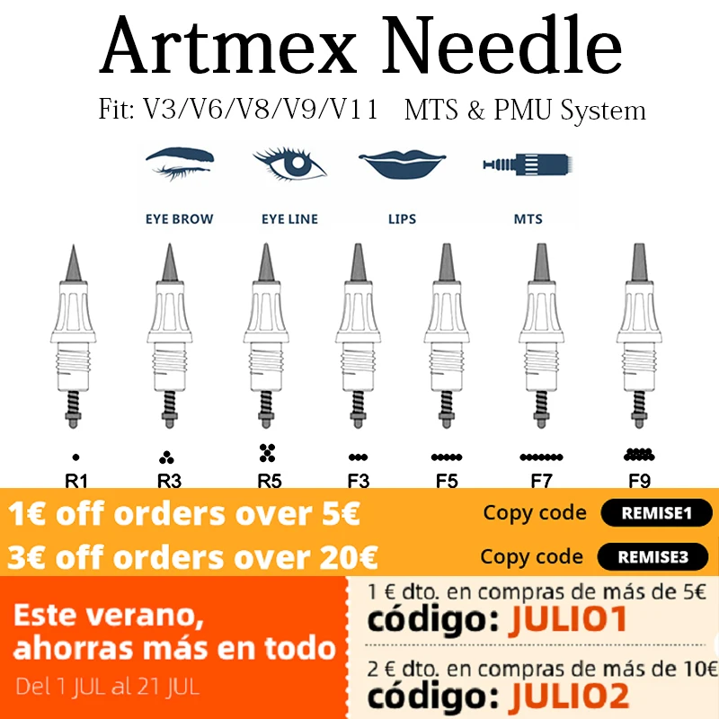 50/100pcs Microblading Tattoo Needle Cartridges M1 L1 R3 R5 F5 F7 Needles Used for Artmex V8 V6 V3 PMU Permanent Makeup Machine