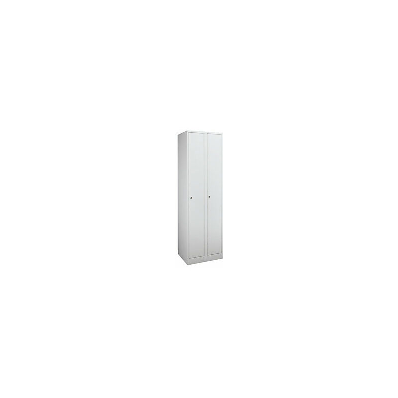 Armadio guardaroba in dimensioni confortevoli, 2 scomparti, larghezza scomparti 300 mm, grigio chiaro/grigio chiaro. Fornitura = montato. Altezza = 1950 mm. Profondità = 500 mm. Larghezza = 600 mm. Colore corpo = grigio chiaro RAL 7035. Colore porta = grigio chiaro RAL 7035. Serratura = serratura a cilindro di sicurezza differenziata. Numero scomparti in larghezza = 2 pz. Larghezza scomparti = 300 mm. Materiale = lamiera d'acciaio, saldata a punti. Altezza armadietto = 1950 mm. Dotazione interna = 1 cappelliera, 1 asta appendiabiti con 3 ganci scorrevoli. Larghezza interna = 298 mm. Altezza interna = 1850 mm. Profondità interna = 475 mm. Tipo di porta = anta a battente. Numero chiavi = 2 pz. Altezza zoccolo = 100 mm. Struttura = saldata a punti. Superficie = con verniciatura a forno. Armadi in comode dimensioni. Aerazione mediante fori sulla parete posteriore. Zoccolino chiuso su tutti i lati alto 100 mm. Robusta struttura in lamiera d'acciaio, verniciata a fuoco, con saldatura a