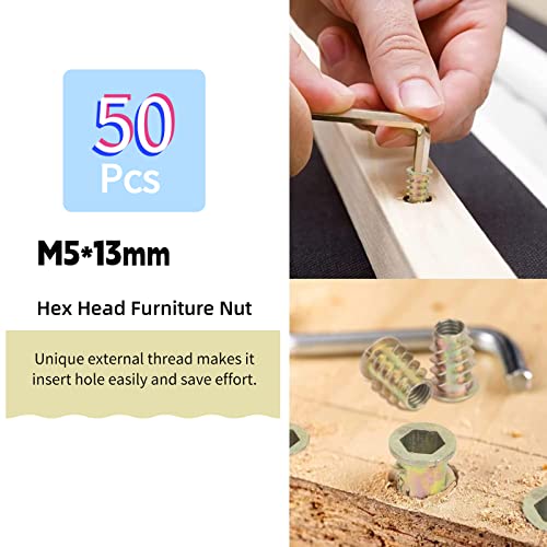 50Pcs M5 * 13mm/0.51in Dadi per mobili a testa esagonale in lega di zinco filettati per inserti in legno Inserti dado Parti incorporate