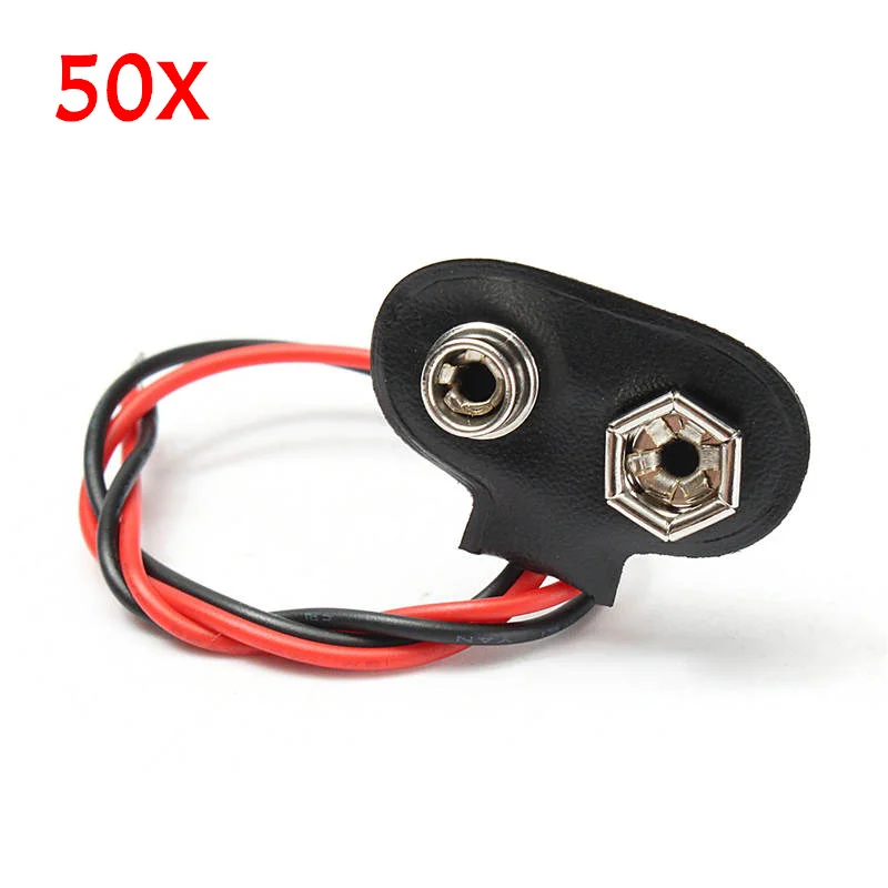 50Pcs 145mm 9V Battery Connector Snap Clip T Style Cable Wire Lead Holder Adapter Connectors Terminals