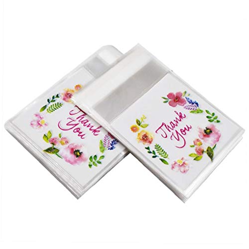 50pcs 7x7cm Thank You Motivo Floreale Sacchetti di plastica Candy Cookie Gift Bag autoadesivi per la Cerimonia Nuziale della Festa di Compleanno