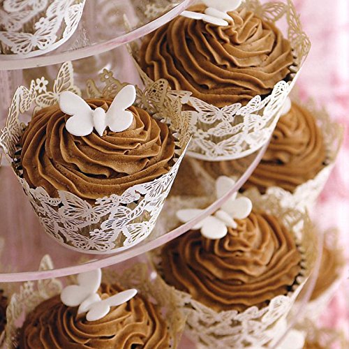 50PCS cupcake cake Wrap Wrapper Butterfly laser Cut wedding party bianco