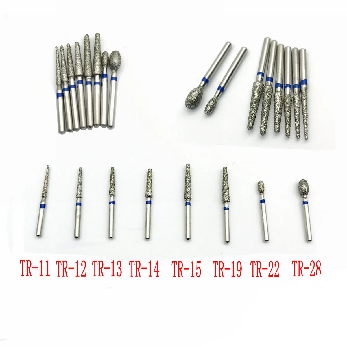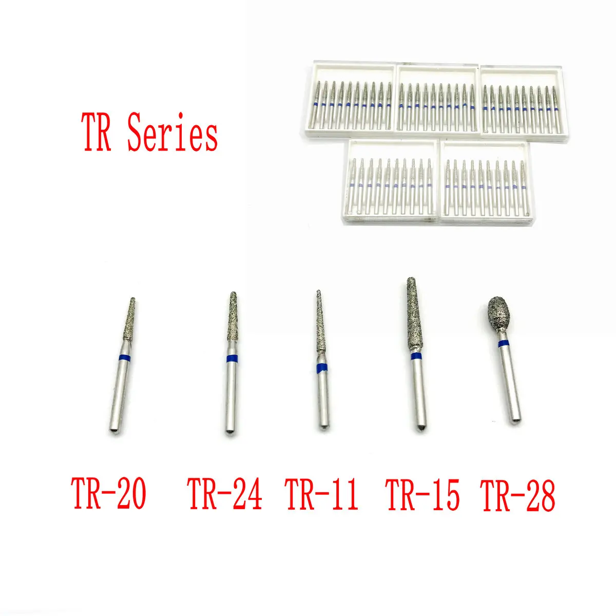 50Pcs Dental Diamond Burs TR Series 1.6mm Fit High Speed Handpiece TR11/TR12/TR13/TR14/TR15/TR20/TR62