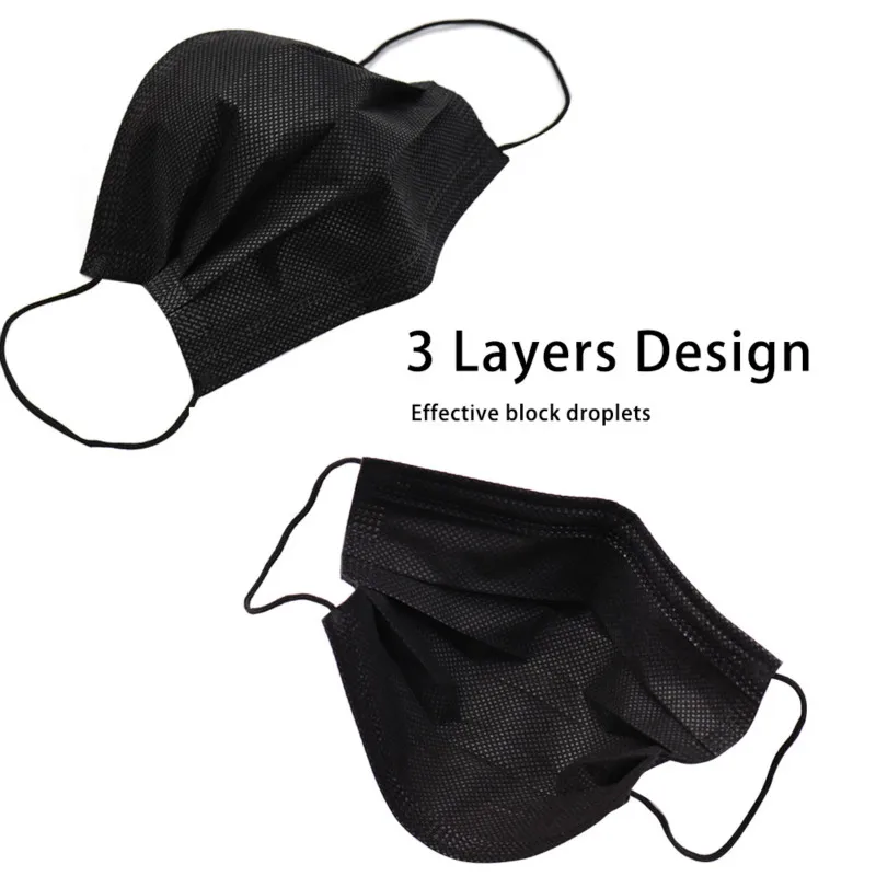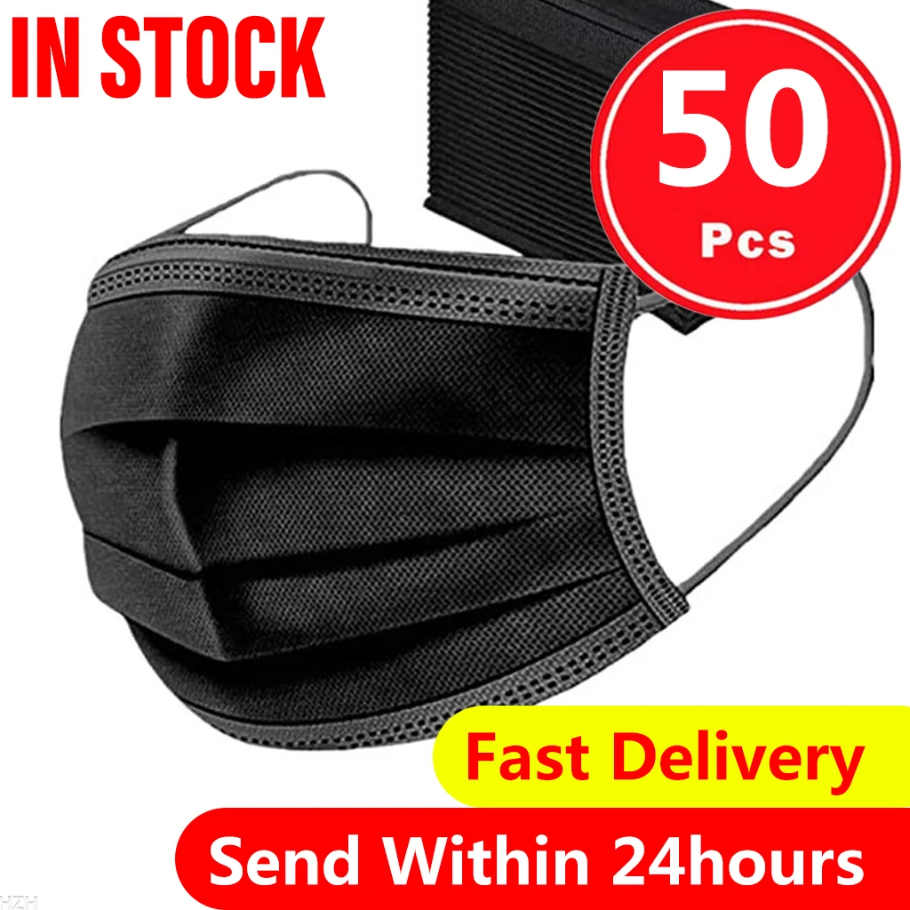 50PCS Mask Disposable Face Masks Nonwove 3 Layer Filter Mouth Mask Anti Dust Safe Breathable Black Protective Masks Fast Ship