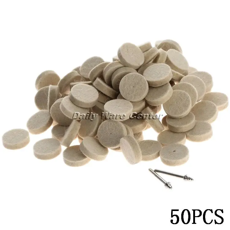 50pcs 25mm Dremel Accessories Wool Polishing Buffing Round Wheels Grinding Pad +2pcs Dia 3.2mm Shanks for DREMEL Rotary Tools
