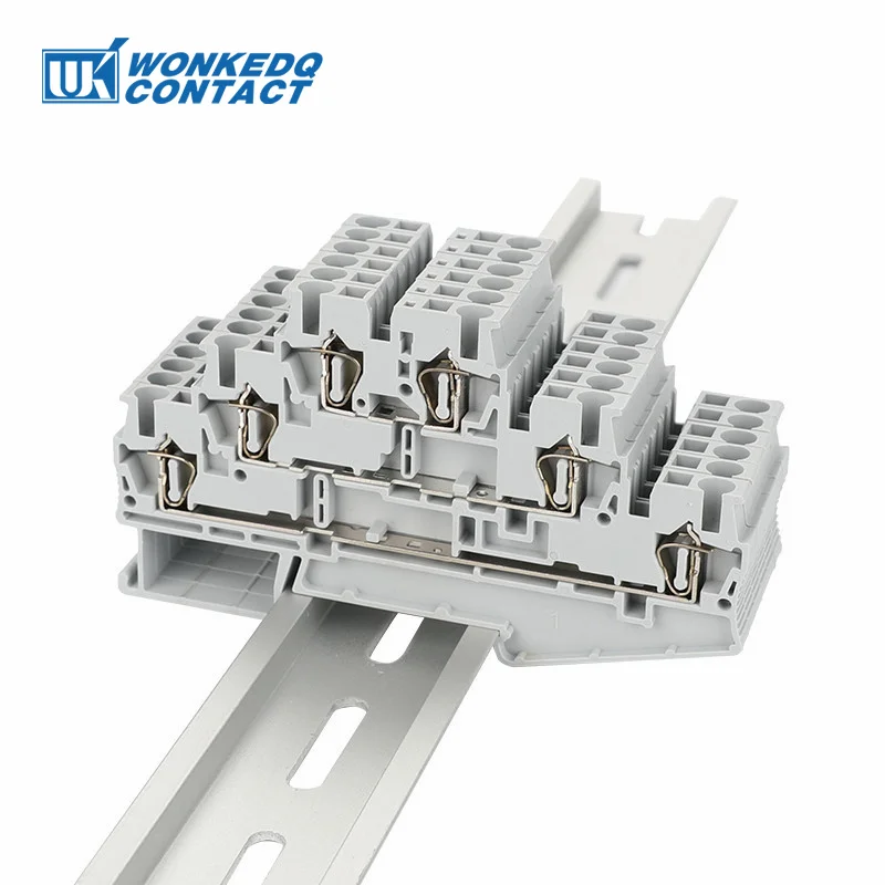 ST 2.5-3L 50Pcs 3 Level Spring-cage Electrical Connectors Triple Layer Wiring Return Pull Din Rail Terminal Block ST2.5-3L