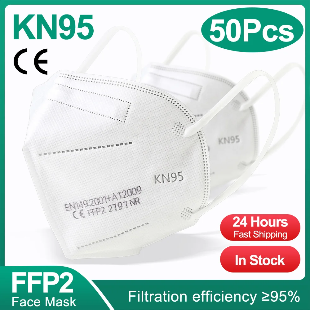 50pcs masks white face mask flu facial masks fpp2 filter masks protection masks ffp2 mask kn95 mask PM2.5 dust mask