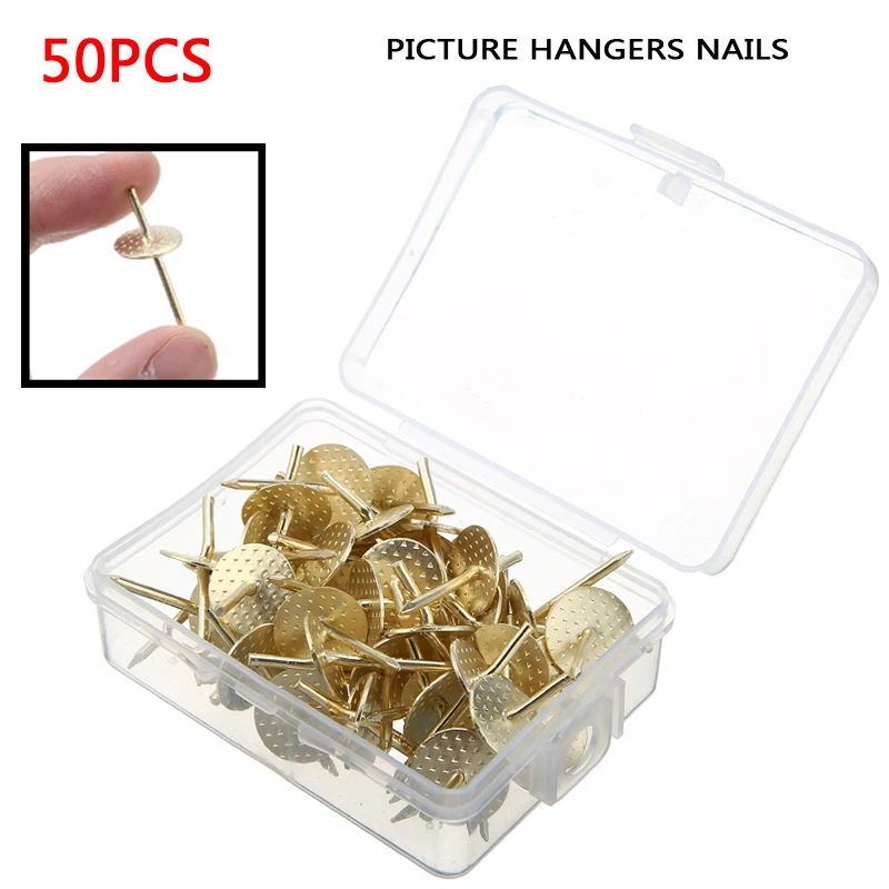50pcs Metal Picture Hangers Nails Photo Frame Hanging Hooks Golden Hangers Picture Hanging Pins