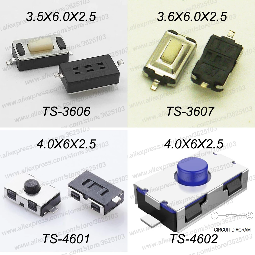 50PCS Side Push Momentary Tact Switch Not Fixed 3x6mm/4x6mm 2Pin Series SMT Push Button Switch key buttons