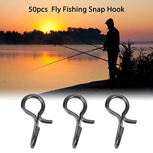 50PCS moschettoni per pesca a mosca, moschettoni per pesca a mosca, moschettoni per mosche in acciaio inossidabile con moschettoni per esche da appendere, ganci(S)