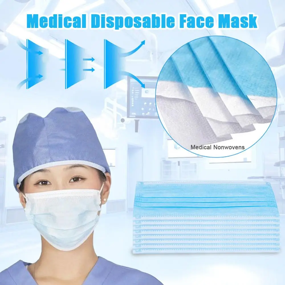 50PCs Professional Sterilized Breathable Surgical Mask Earloop Face Mouth Masks 3 Layers Non Woven Disposable Medical Masks