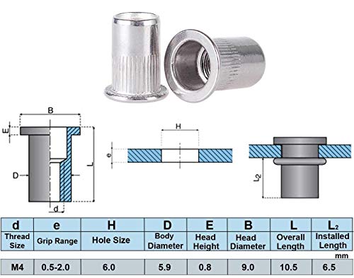50pcs M4 Rivetto Dado In Acciaio Inox Rivetto Dadi Filettati Inserto Nutsert Rivnuts M4-0.7