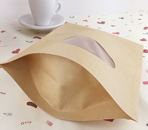 50PCS Sacchetti per Sacchetti Artigianali con Custodia in Carta Marrone Confezione Stand-up e Chiusura con Cerniera con Ritaglio per Finestra per Frutta a Guscio e Caramelle Frutta secca 5.1 '' x 7.1