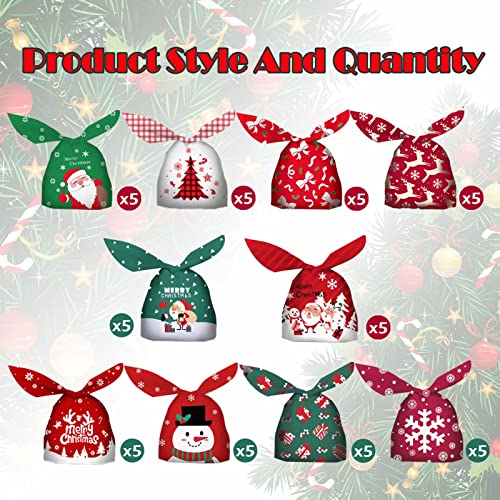 【Design carino】 - Il design unico e adorabile dell'orecchio di coniglio può essere facilmente legato per evitare che caramelle interne, biscotti, snack, popcorn e altre prelibatezze cadano. Compresi 10 stili di motivi di natalizie, composti da elementi classici di natalizie: fiocco di neve, cravatta a farfalla, Corna di alce, albero di Natale