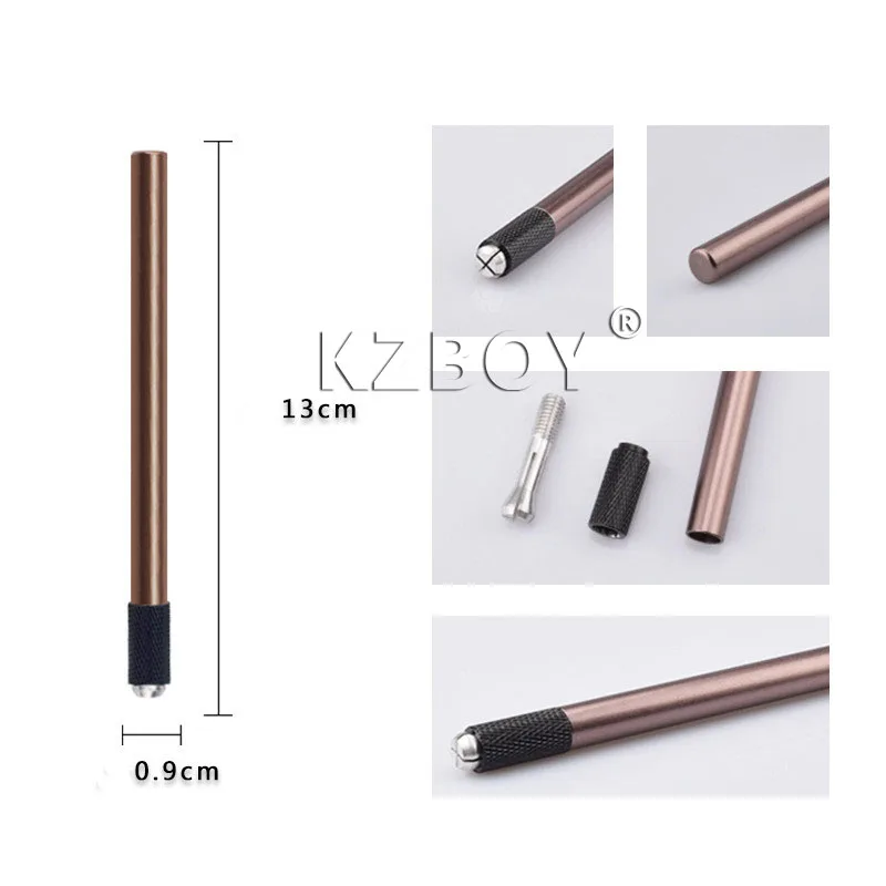 50PCS Single Sided Aluminum alloy Brown Microblading Handle with Individually Packaging for Eyebrow Lip Eyeliner