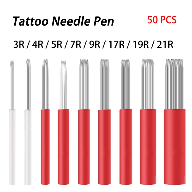 50PCS Tattoo Needle Pen 3R/4R/5R/7R/9R/17R/19R/21R Micro-Blade Needle Beauty Tool Manual Easy To Color Used For Eyebrows And Lip