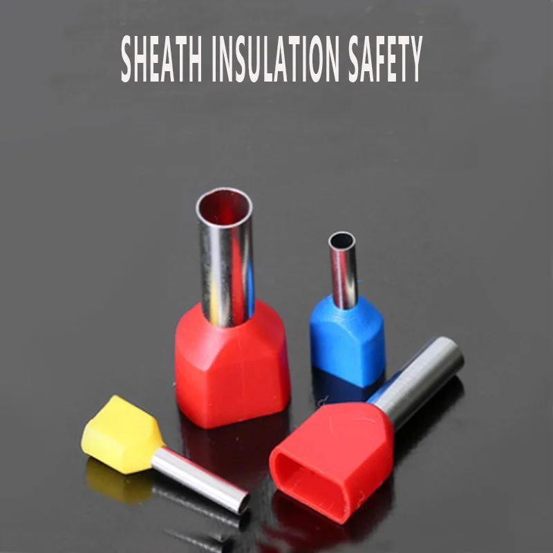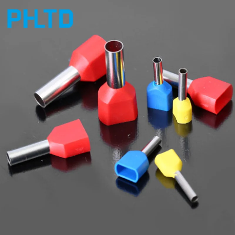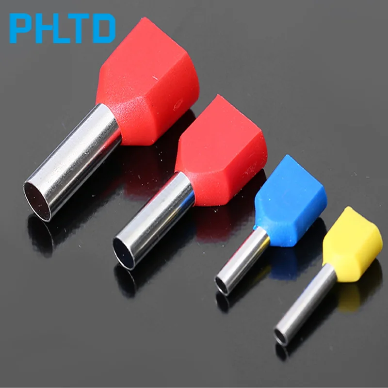 50PCS TE1008 TE1010 TE1012 cold pressed end double line tube shaped insulated tubular terminaltwo line connection Connector