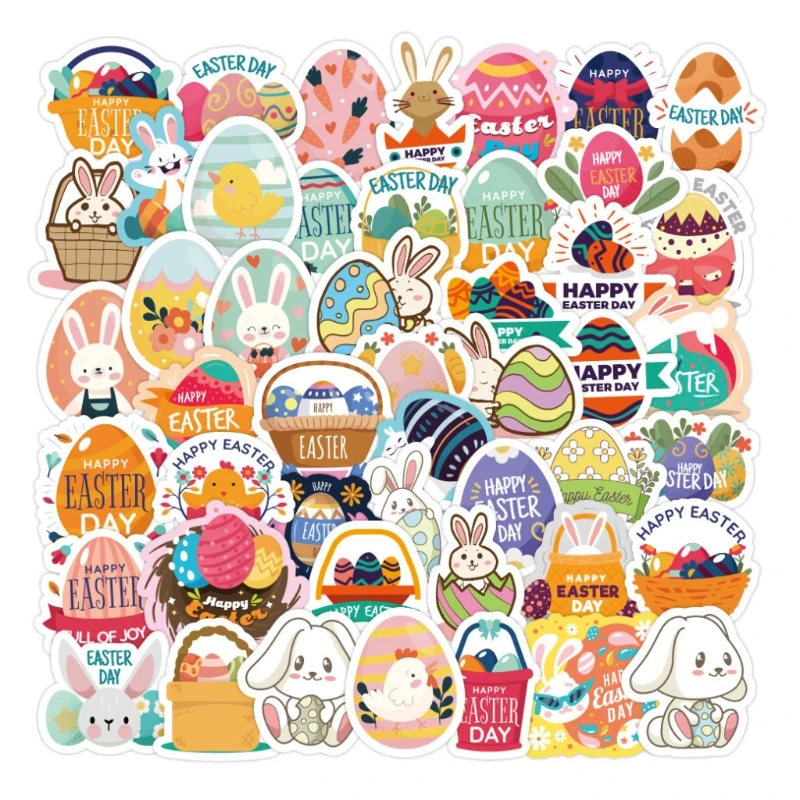 50Pcs Waterproof Reusable Easter Stickers for Luggage Laptop Phone Festival Party Gift Stickers for Kids Teens Adults