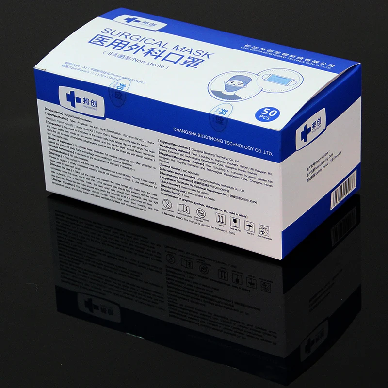 50pcs/box disposable medical use surgery face mask 3ply earloop blue color safe type anti-dust mask