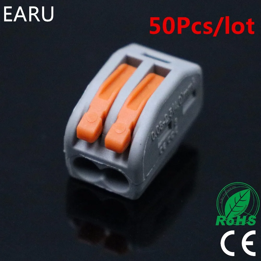 50pcs/lot - 222-412 2Pin 212 Universal Compact Wire Wiring Connector 2 pin Conductor Terminal Block Lever 0.08-2.5mm2