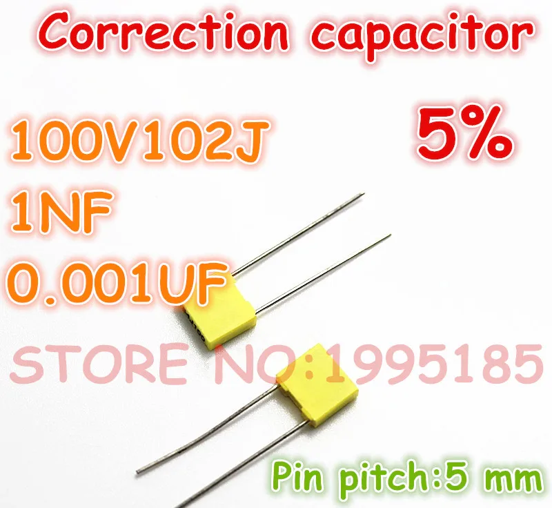 50pcs/lot correction Capacitor 100V102J 1NF 0.001UF 5% Metallized polyester film capacitor Pin pitch 5 mm