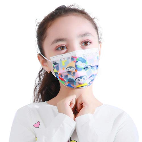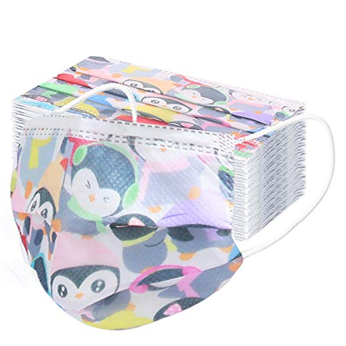 50Pezzi Bambini Viso Visiera Tessuto Bocca Carino Pinguino Stampa - Protettiva Stoffa Monouso 3 Strati Traspirante Antipolvere Elastico
