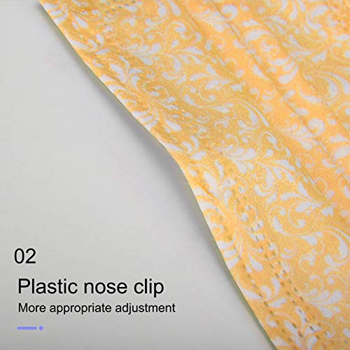 50Pezzi Fiore Giallo Vintage Stampa Viso Visiera Tessuto Bocca - Protettiva Stoffa Monouso 3 Strati Traspirante Antipolvere Elastico