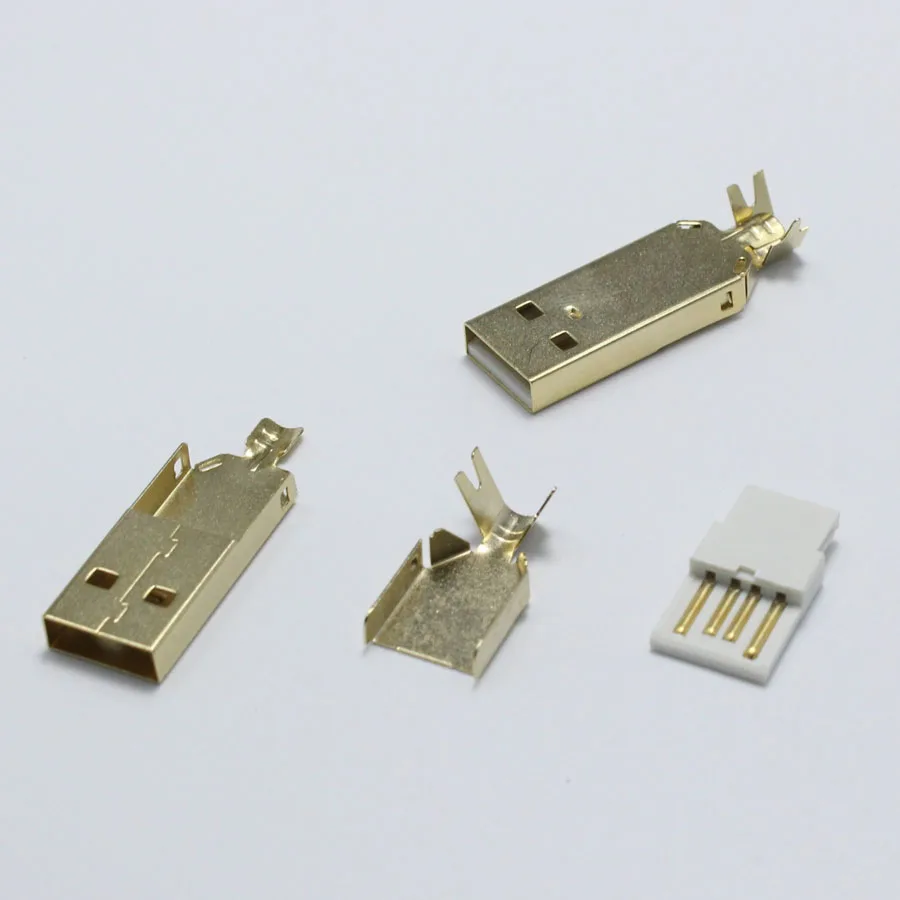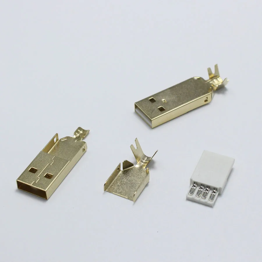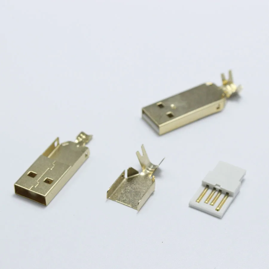 50sets USB 2.0 Type A Welding Type Male Plug Gold Plated Connectors usb Tail Socket 3 in 1 DIY Adapter