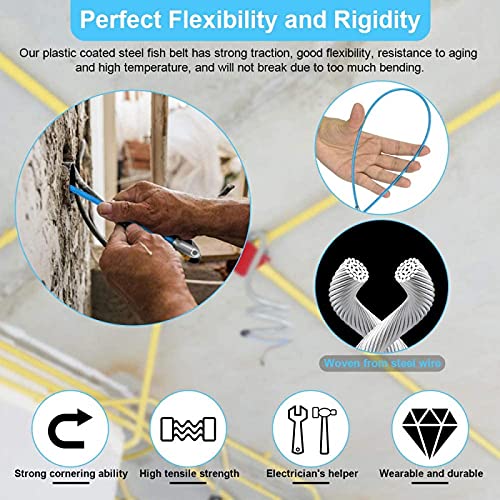 【Acciaio rivestito in plastica】 Con una struttura rivestita in plastica non conduttiva, il versatile cavo per pesci è applicabile per installazioni di telecomunicazioni, elettriche, a parete, a pavimento e altri cablaggi. È lo strumento perfetto per aiutarti a tirare i cavi attraverso condotti occupati e scatole di pannelli.