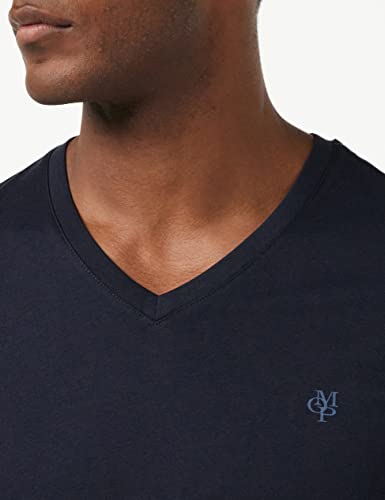 Marc O'Polo 51018 Uomo con Stampa Piccolo Logo, Comodo Top in Cotone Biologico, Classica Maglietta a Maniche Corte con Scollo a V, Blu, S