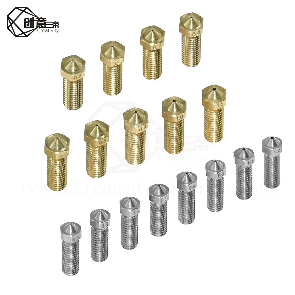 5/10Pcs 3D Printer Volcano Nozzles 1.75mm Filament Extruder Nozzle 0.2/0.25/0.3/0.4/0.5/0.6/0.8/1.0 for 3D Printer Part