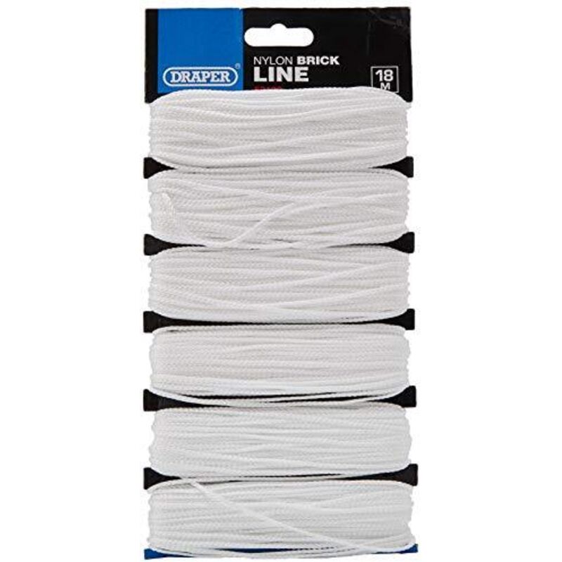 Draper 52130 6 18 m Nylon Brick Line Hanks White braided nylon,Approximate length 18M,Breaking strain of 22.5kg,Packed six hanks per display card