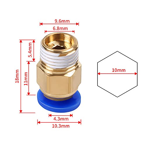 5/2/1pcs Connettori pneumatici Accoppiatore rapido PC4-01 PC6-01 PC4-M5/M6 Tubo PTFE per accessori estrusore non dritti-5 pcs.PC4 01 M10 1.75mm