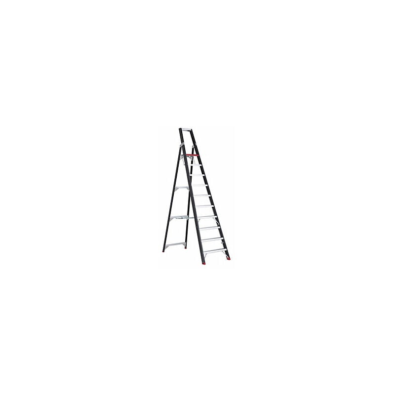 Scala a libro di sicurezza, salita da un solo lato, 10 gradini incl. piattaforma. Fornitura = montato. Tipo di prodotto = scale a libro con gradini, salita su un lato. Altezza di lavoro = 4350 mm. Salita = su un lato. Versione da salita = gradini. N. gradini, piattaforma inclusa = 10 pz. Materiale telaio = alluminio. Materiale gradini = profilato in alluminio. Profondità gradini = 80 mm. Altezza piattaforma = 2350 mm. Peso = 18.9 kg. Colore telaio = nero. Caratteristiche = pieghevole. Portata = 150 kg. Caratteristiche scala = staffa di sicurezza. Larghezza esterna in basso = 710 mm. Pratica vaschetta per attrezzi e minuteria. Sicurezza e comfort dal design elegante. Con verniciatura a polvere in nero. Robusta sicurezza antidivaricamento. Uno scalino rosso segnala l'altezza di lavoro massima, per un utilizzo sicuro. Pieghevoli e salvaspazio. Piedini antiscivolo. Pieghevoli. Montanti in profilati a C in alluminio rinforzato con grandi piedini. Gradini mandorlati in doppio profilato