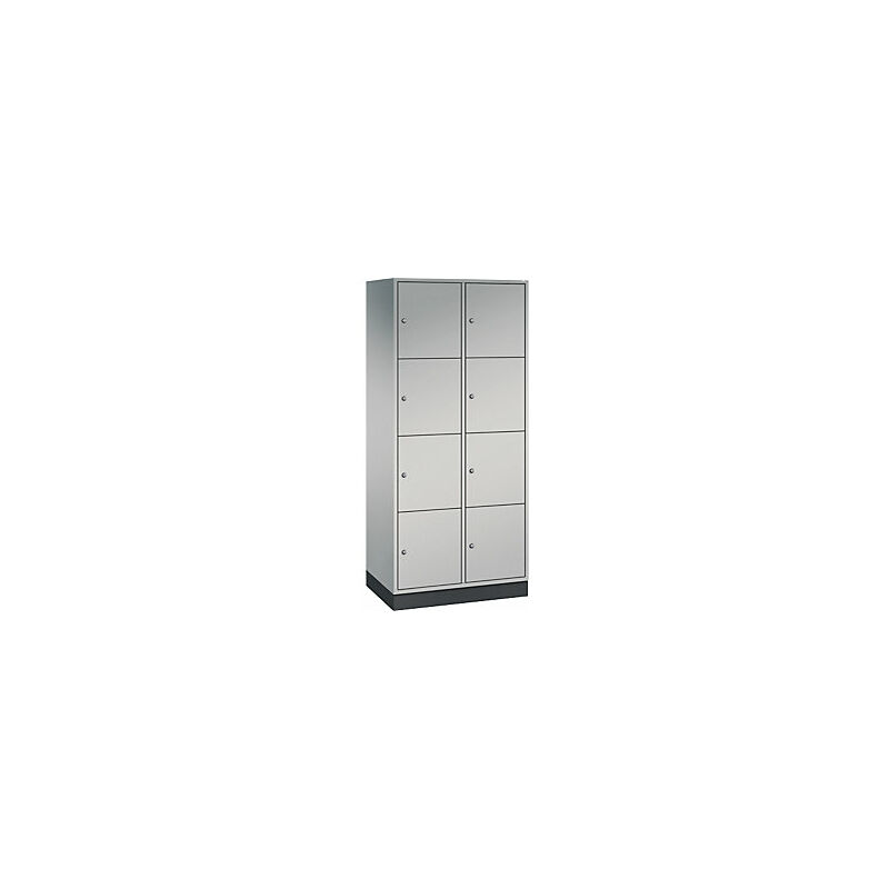 Armadietto a scomparti in acciaio INTRO, altezza scomparto 435 mm, largh. x prof. 820 x 500 mm, 8 scomparti, corpo alluminio brillante, ante alluminio brillante. Fornitura = montato. Altezza = 1950 mm. Profondità = 500 mm. Larghezza = 820 mm. Colore corpo = alluminio brillante RAL 9006. Colore porta = alluminio brillante RAL 9006. Serratura = serratura a cilindro differenziata. Numero scomparti in larghezza = 2 pz. Numero scomparti = 8 pz. Larghezza scomparti = 400 mm. Materiale = lamiera d'acciaio. Altezza armadietto = 1950 mm. Dotazione interna = senza dotazione interna. Larghezza interna = 360 mm. Altezza interna = 435 mm. Profondità interna = 460 mm. Tipo di porta = anta a battente. Numero chiavi = 2 pz. Altezza scomparti = 435 mm. Larghezza ripiani = 400 mm. Profondità ripiani = 500 mm. Altezza zoccolo = 100 mm. Struttura = con saldatura. Superficie = verniciatura. Struttura in acciaio di lunga durata. Serratura a cilindro con 2 chiavi. Fori di aerazione sulla parete posteriore e
