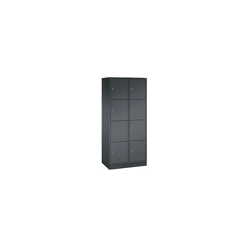 Armadietto a scomparti in acciaio INTRO, altezza scomparto 435 mm, largh. x prof. 820 x 500 mm, 8 scomparti, corpo grigio nerastro, ante grigio nerastro. Fornitura = montato. Altezza = 1950 mm. Profondità = 500 mm. Larghezza = 820 mm. Colore corpo = grigio nerastro RAL 7021. Colore porta = grigio nerastro RAL 7021. Serratura = serratura a cilindro differenziata. Numero scomparti in larghezza = 2 pz. Numero scomparti = 8 pz. Larghezza scomparti = 400 mm. Materiale = lamiera d'acciaio. Altezza armadietto = 1950 mm. Dotazione interna = senza dotazione interna. Larghezza interna = 360 mm. Altezza interna = 435 mm. Profondità interna = 460 mm. Tipo di porta = anta a battente. Numero chiavi = 2 pz. Altezza scomparti = 435 mm. Larghezza ripiani = 400 mm. Profondità ripiani = 500 mm. Altezza zoccolo = 100 mm. Struttura = con saldatura. Superficie = verniciatura. Struttura in acciaio di lunga durata. Serratura a cilindro con 2 chiavi. Fori di aerazione sulla parete posteriore e distanziali da