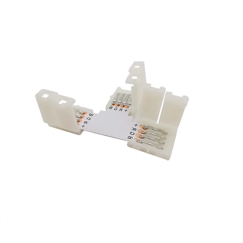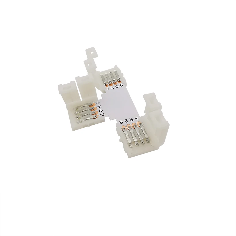 5/2Pcs T Shape 4 PIN 10mm Solderless LED Strip Corner Rright Angle T Shape 4pin LED Connector for 3528 5050 RGB LED Strip Lights
