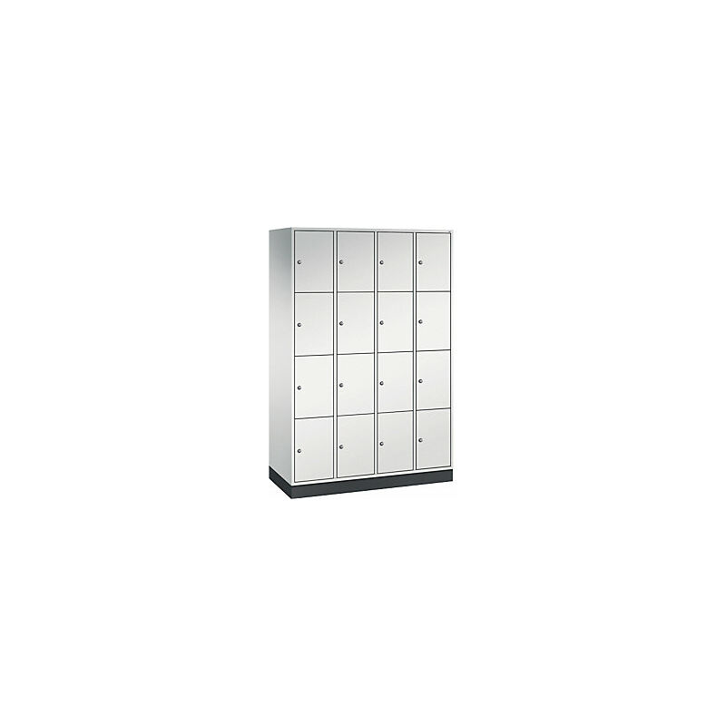 Armadietto a scomparti in acciaio INTRO, altezza scomparto 435 mm, largh. x prof. 1220 x 500 mm, 16 scomparti, corpo grigio chiaro, ante grigio chiaro. Fornitura = montato. Altezza = 1950 mm. Profondità = 500 mm. Larghezza = 1220 mm. Colore corpo = grigio chiaro RAL 7035. Colore porta = grigio chiaro RAL 7035. Serratura = serratura a cilindro differenziata. Numero scomparti in larghezza = 4 pz. Numero scomparti = 16 pz. Larghezza scomparti = 300 mm. Materiale = lamiera d'acciaio. Altezza armadietto = 1950 mm. Dotazione interna = senza dotazione interna. Larghezza interna = 260 mm. Altezza interna = 435 mm. Profondità interna = 460 mm. Tipo di porta = anta a battente. Numero chiavi = 2 pz. Altezza scomparti = 435 mm. Larghezza ripiani = 300 mm. Profondità ripiani = 500 mm. Altezza zoccolo = 100 mm. Struttura = con saldatura. Superficie = verniciatura. Ante a parete doppia per maggiore stabilità. Struttura in acciaio di lunga durata. Serratura a cilindro con 2 chiavi. Fori di aerazione
